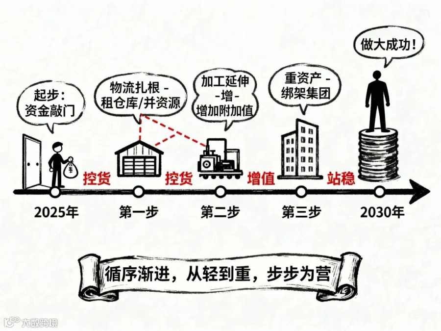 第五,用物流带动贸易,用贸易反哺物流。物流和贸易要形成正循环。你有了物流能力,可以吸引更多的贸易客户。你有了贸易业务,可以为物流提供稳定的货源。