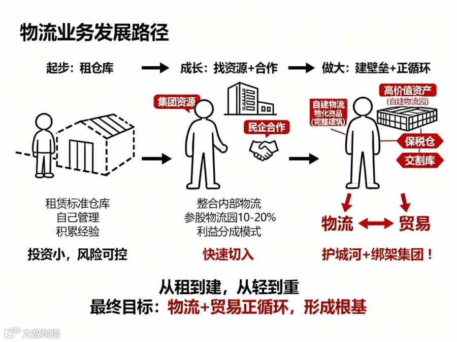 第三,跟民企合作。很多民企有物流资源,但是缺少大客户,缺少资金支持,缺少国企背书。你可以跟他们合作,甚至参股,利用他们的资源快速切入物流业务。