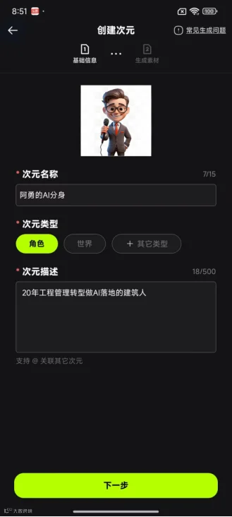 创建完主次元后就可以使用这个角色进行创意创造了。