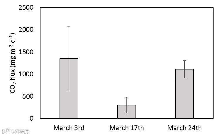 CO2通量和采样日期没有明显的规律(图7),但燃烧地点的排放却较低(图8)。