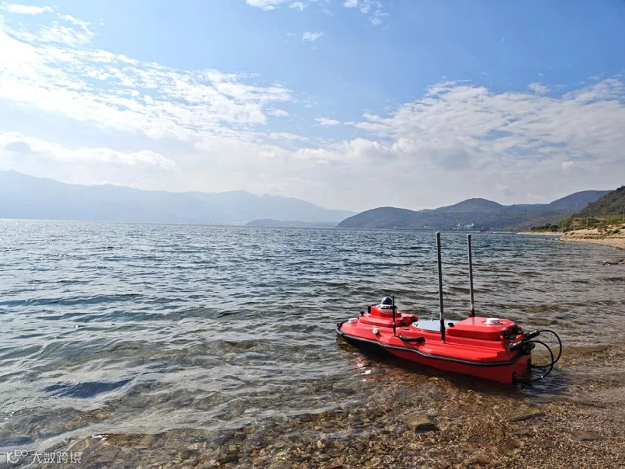 澄澈蓝天,白云悠悠,湖水波光粼粼。SU20无人船静泊湖岸浅滩,远处山峦起伏,朦胧淡影,共织成一幅清新静谧的湖景画卷,满是自然的悠然与安宁。