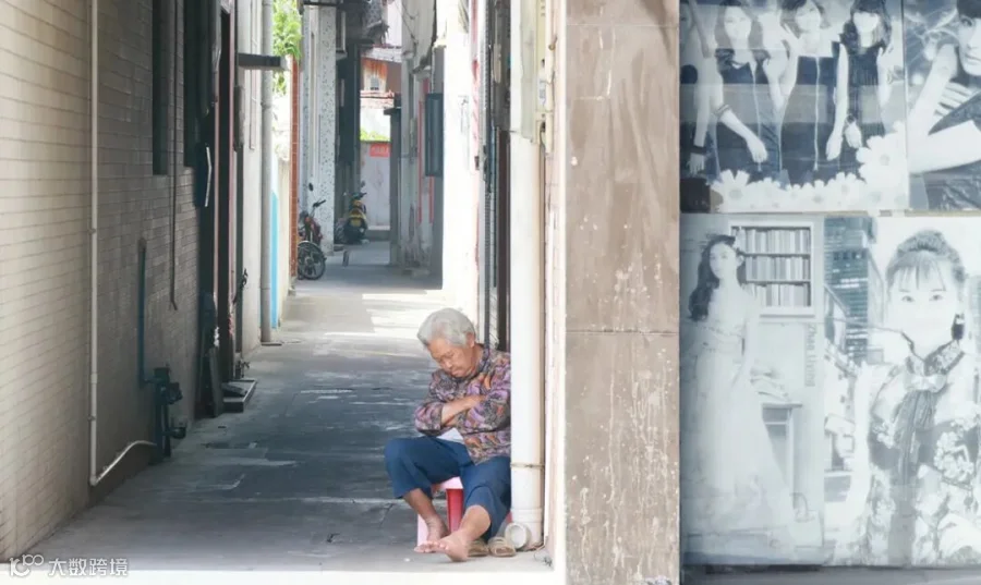 源于中山小榄镇立面扫描项目。镜头定格城市老街头的一隅,垂暮老人在椅上悄然睡去,皱纹里藏着岁月的故事。身旁的年代感海报,老旧的街头巷尾,是过往时代的印记。