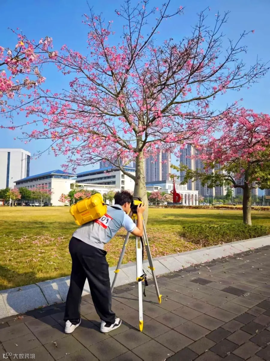春日校园,粉樱满树。学子于花下专注操作测量仪器,身影坚毅。他在知识的田野里丈量,以专注与探索绘就青春奋进图景。