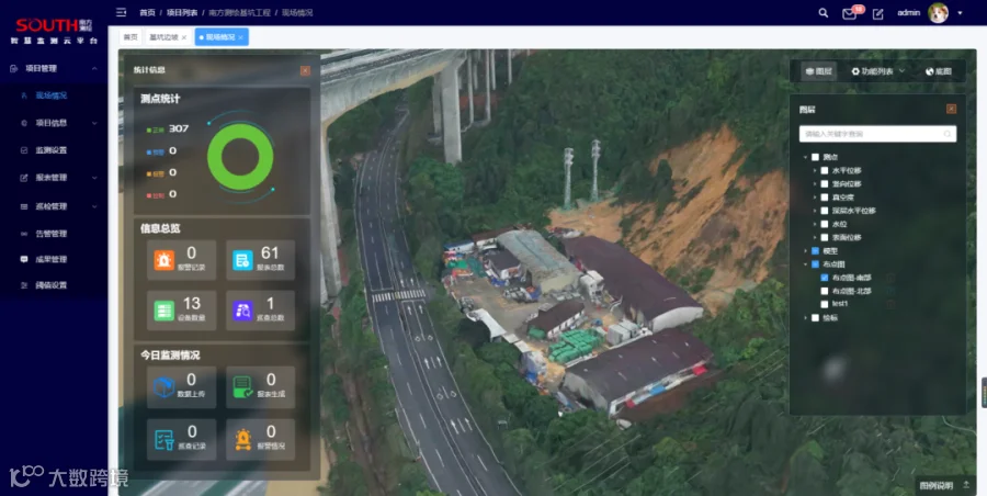 搭配FMOS软件:自动监测测点的位移变化,数据自动处理上传,出现异常及时预警,水平及竖直方向精度均优于3mm。