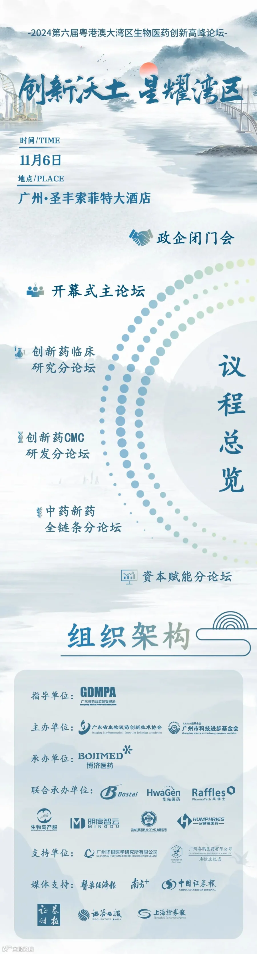 由广东省药品监督管理局指导、广东省生物医药创新技术协会主办、博济医药承办、玻思韬协办的“创新沃土 星耀湾区”第六届粤港澳大湾区生物医药创新高峰论坛将于2024年11月6日在广州圣丰索菲特大酒店隆重举行,诚邀业界同仁共襄盛举!