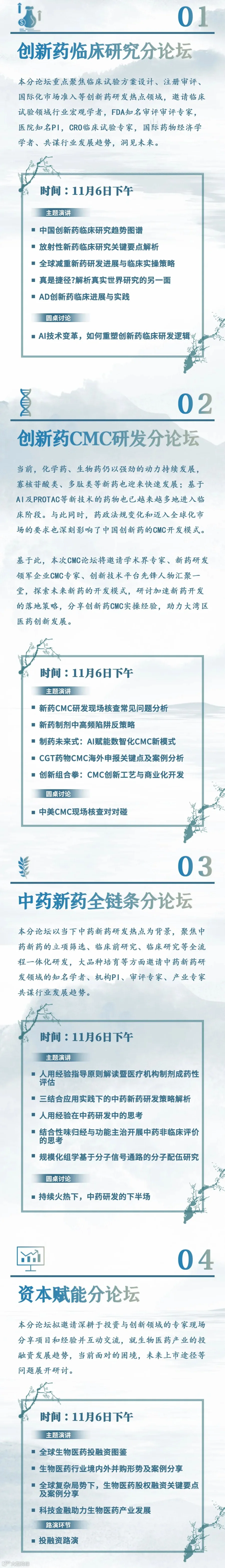 本届高峰论坛将重点聚焦《行动方案》的落地实操,届时邀请政企产学研的诸多专家学者结合《行动方案》的各项举措对大湾区新药监管科学、创新技术发展、投融资关注要点、中药新药研发瓶颈等方面进行全面解读,致力于推动大湾区生物医药产业创新、高效、充满活力的高质量发展。