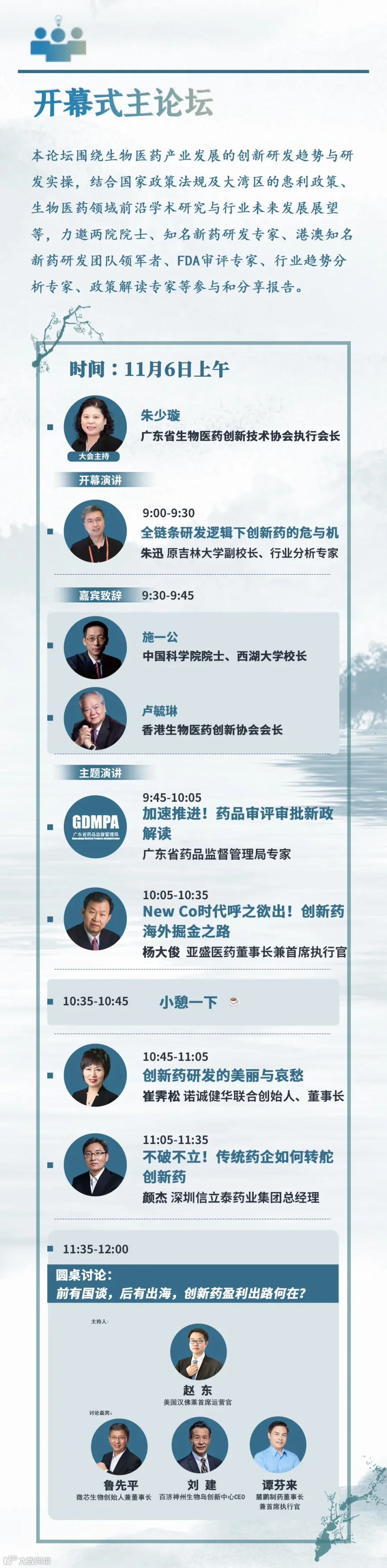 行业领袖级专家朱迅教授开幕演讲,杨大俊、崔霁松、鲁先平等知名biotech创始人现身说法,百济神州、诺诚健华、博济医药、信立泰、麓鹏制药等创新药企科学倾情加盟,更有院士大咖、主政领导重磅领衔。大湾区生物医药人济济一堂,共谱大湾区创新药新华章!