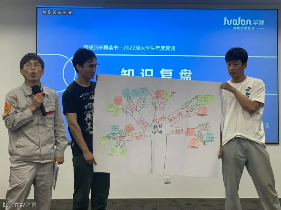 在知识复盘环节,学员们通过头脑风暴共创,以思维导图、知识清单或图文等多样形式将三天复训课堂学习内容进行系统全面的总结与呈现,各学员小组依次上台分享学习收获与感悟。