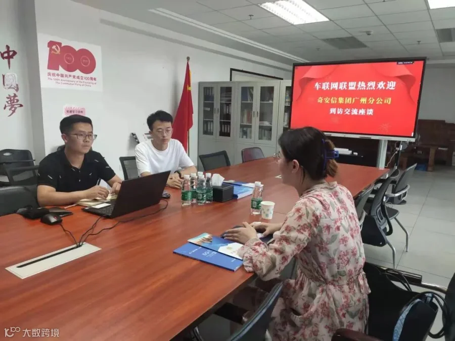 2022年6月27日下午,奇安信科技集团股份有限公司(以下简称奇安信,股票代码688561)广东省分区大客户销售经理徐奥妮到访广东省车联网产业联盟,与广东省车联网产业联盟商务部副部长刘绍伟、商务专员赵云进行深入交流。