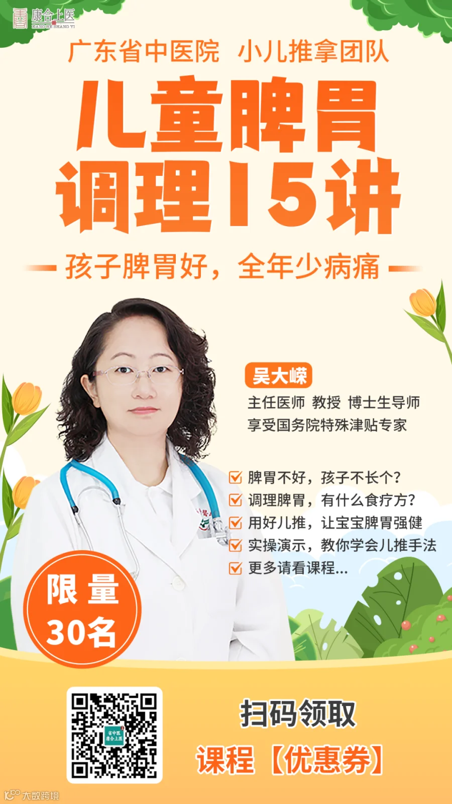 课程适合所有关心孩子脾胃健康的家长,孩子若出现挑食厌食、很能吃但不长个子不长肉、经常半夜哭闹、入睡难、反复生病、抵抗力差、过敏体质、鼻炎湿疹常发作等情况,更需多加注意。