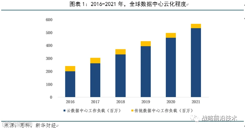 5G带动流量需求,数据资源云化推动IDC产业升级。IDC集数据存储和数据流通为一体,面向互联网企业、云计算厂商以及电商、媒体、金融企业、视频/游戏公司等行业用户,提供互联网服务。IDC业务已从传统的网站系统托管服务、服务器和带宽资源租赁、网络安全增值服务扩展至云计算服务。5G加快部署,工业互联网、产业互联网的底层数据被挖掘出来,数据流量激增,IDC景气度高。计算资源云化,传统数据中心向云数据中心升级的步伐加快。据思科数据,随着全球数据中心云化程度提升,预计到2021年, 大约95%的工作负载将由云数据中心完成。