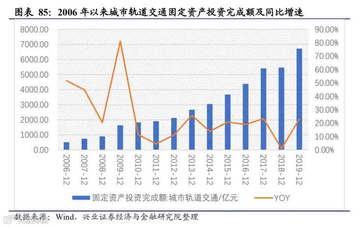 2)新一轮的基建补短板:新一轮的基建,和过往 的“旧基建”相比,更加聚焦到以城市轨道交通、城市间高速铁路、生态治理等基建重大项目;并且,在目前“稳增长”需求不断提升的宏观环境下,对比两个“新基建”,“新一轮的基建”对经济的支撑是“狭义新基建”不可替代的。