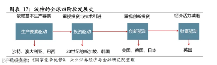 波特在其《国家竞争优势》中指出,每一个国家的发展将经历生产要素驱动、投资驱动、创新驱动和财富驱动等四个发展阶段。1981-2017 年间,中国主要是由地产、 传统基建为代表的投资驱动发展。然而,近年来 GDP 增速呈下行趋势,呈现出明显的 L 型。2019 年,中国 GDP 达到 99.09 万亿元,同比增速为 6.10%,同比下降 0.6 个百分点。在经济增长趋缓的背景下,我国经济发展将踏上由投资驱动转向创 新驱动的转型之路。基于《突破性创新与经济增长》报告给出的分析框架,创新可以通过资本深化、推动人力资本增长、提高企业生产效率与促进经济结构转型 四大途径来促进经济增长,中国将迈入“大创新时代”。