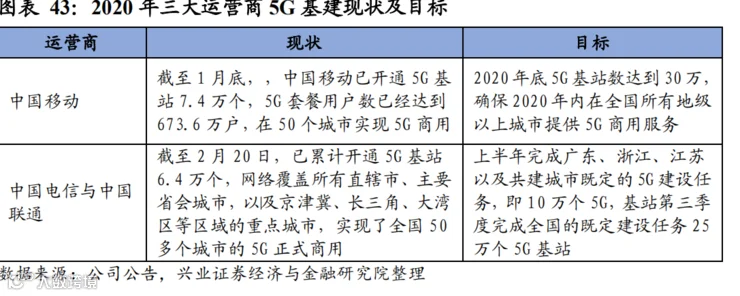 从宏观层面,信息通信业是全面支撑经济社会发展的战略性、基础性和先导性行业,数字经济新基建的复工复产进程,对于全国企业复工复产工作不仅能产生很好的示范和带动作用,更能起到重要的支撑和保障作用;因此为了更加有效地对抗疫情、提振经济,国内数字经济基建投资有望加码,其中 5G 通信新基建更是首选。