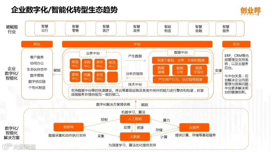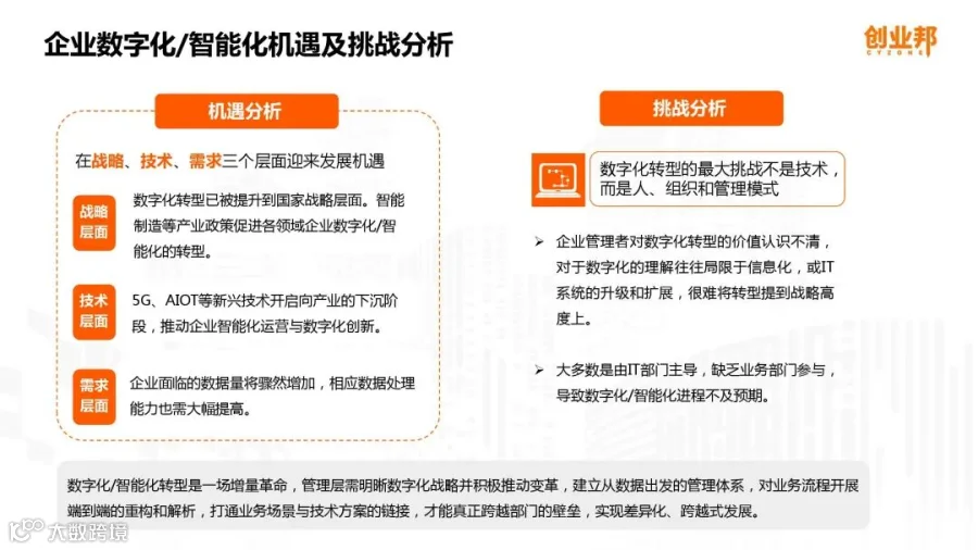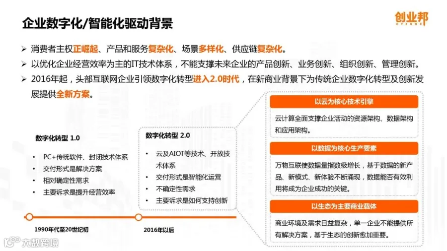 数字经济时代的企业数字化转型,以数据为核心,新兴技术为手段,企业实现微粒化的解构与智能化的重组。