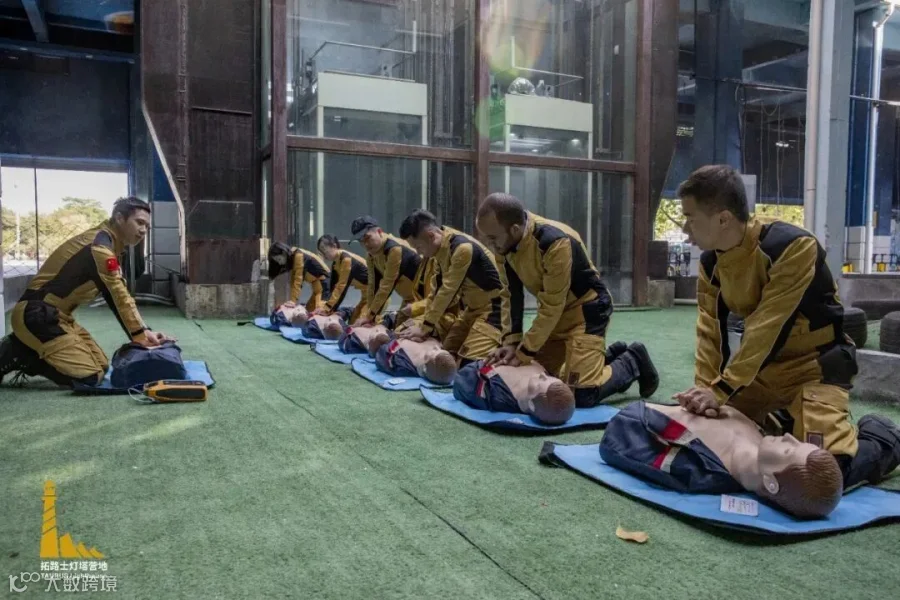 同时,在有经验的专业教官带领下,拓路士全体教官不仅进行了心肺复苏等国际急救知识的再培训,并掌握AED的使用方法。AED规范使用也将纳入到游客新的国际急救知识培训当中,同时拓路士灯塔营地AED成为营地装备的标准配置和应急服务,并将加入广州AED网络。