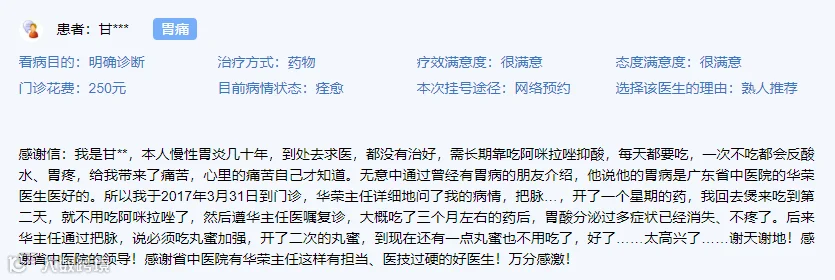 看着母亲的状态逐渐变好,张阿姨的儿子也忍不住向华荣教授致谢:“我母亲从02年开始看病,看了十多年,广州一套房子都看没了,人还是不舒服。现在有好转了,真的太谢谢您了!”