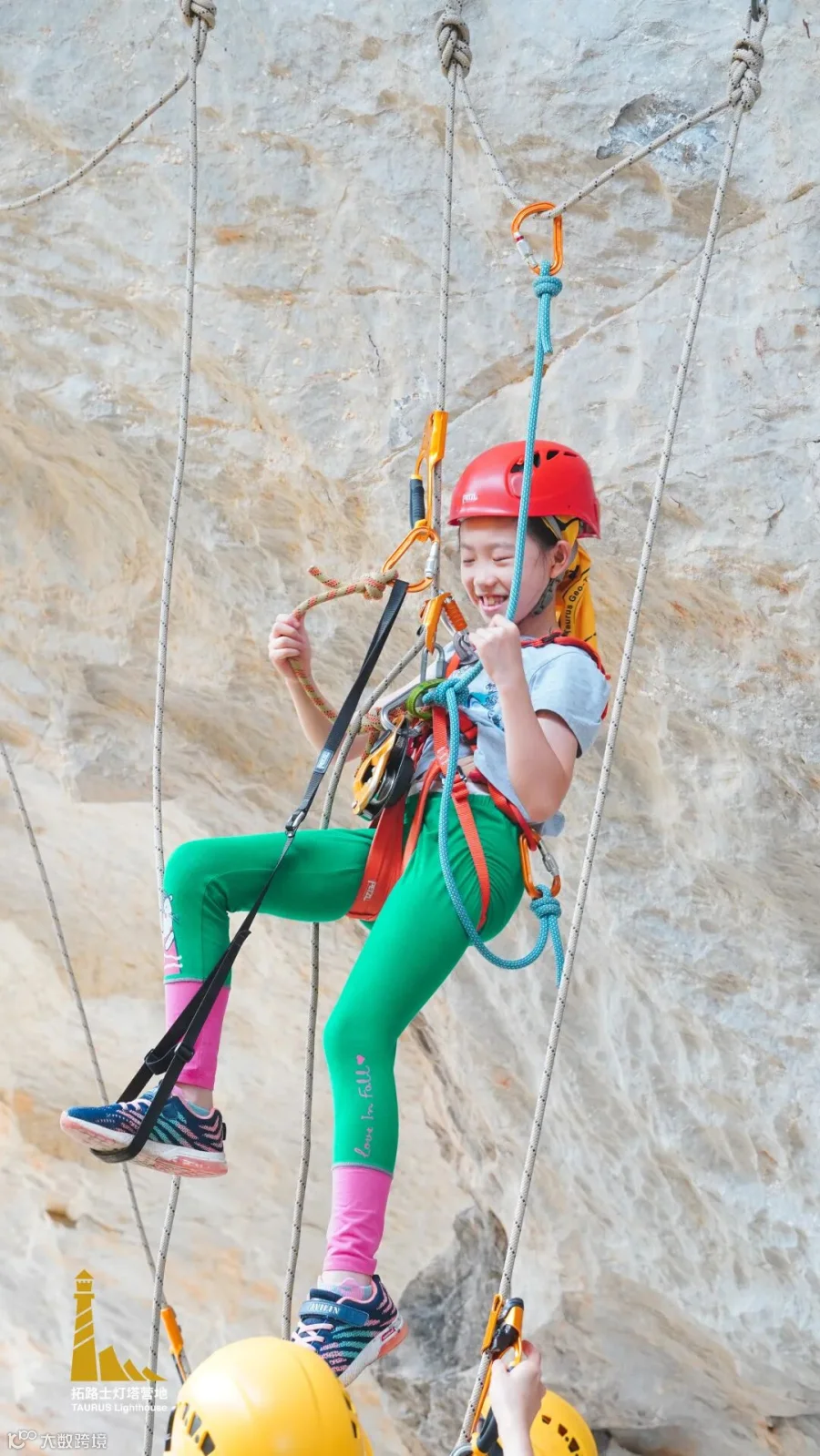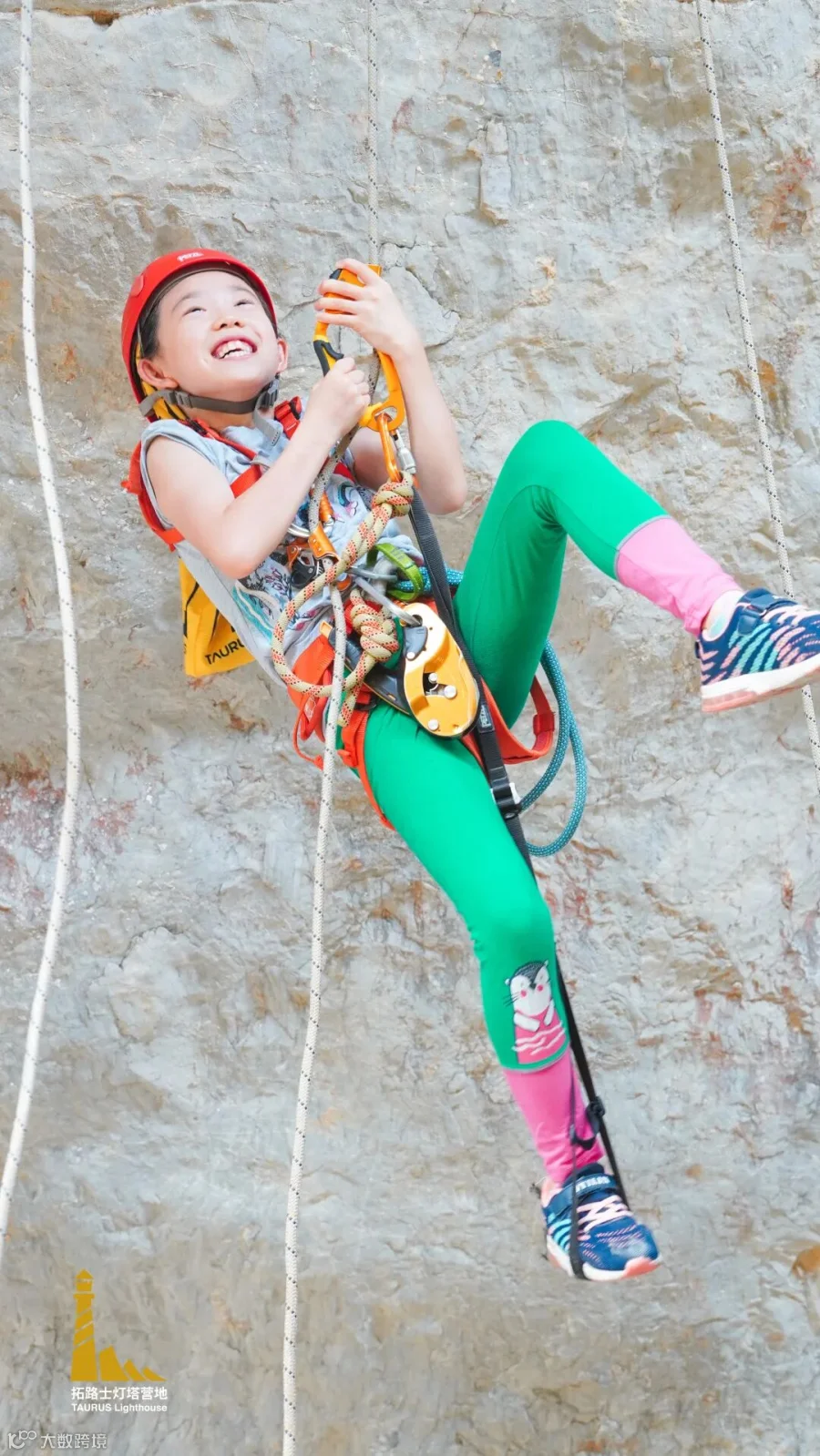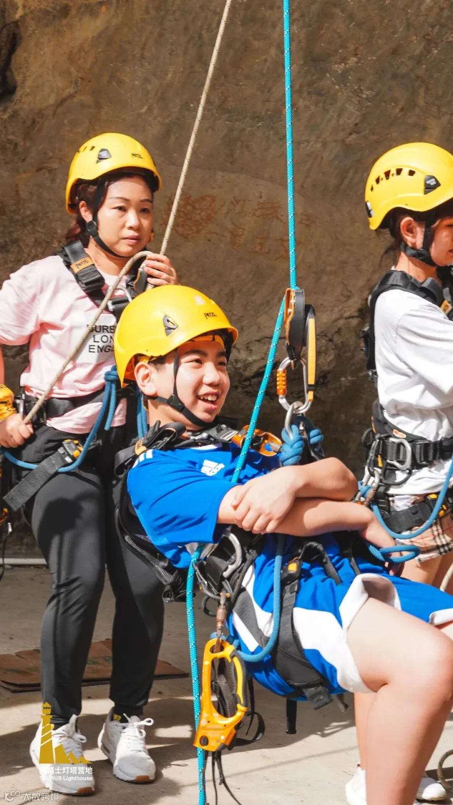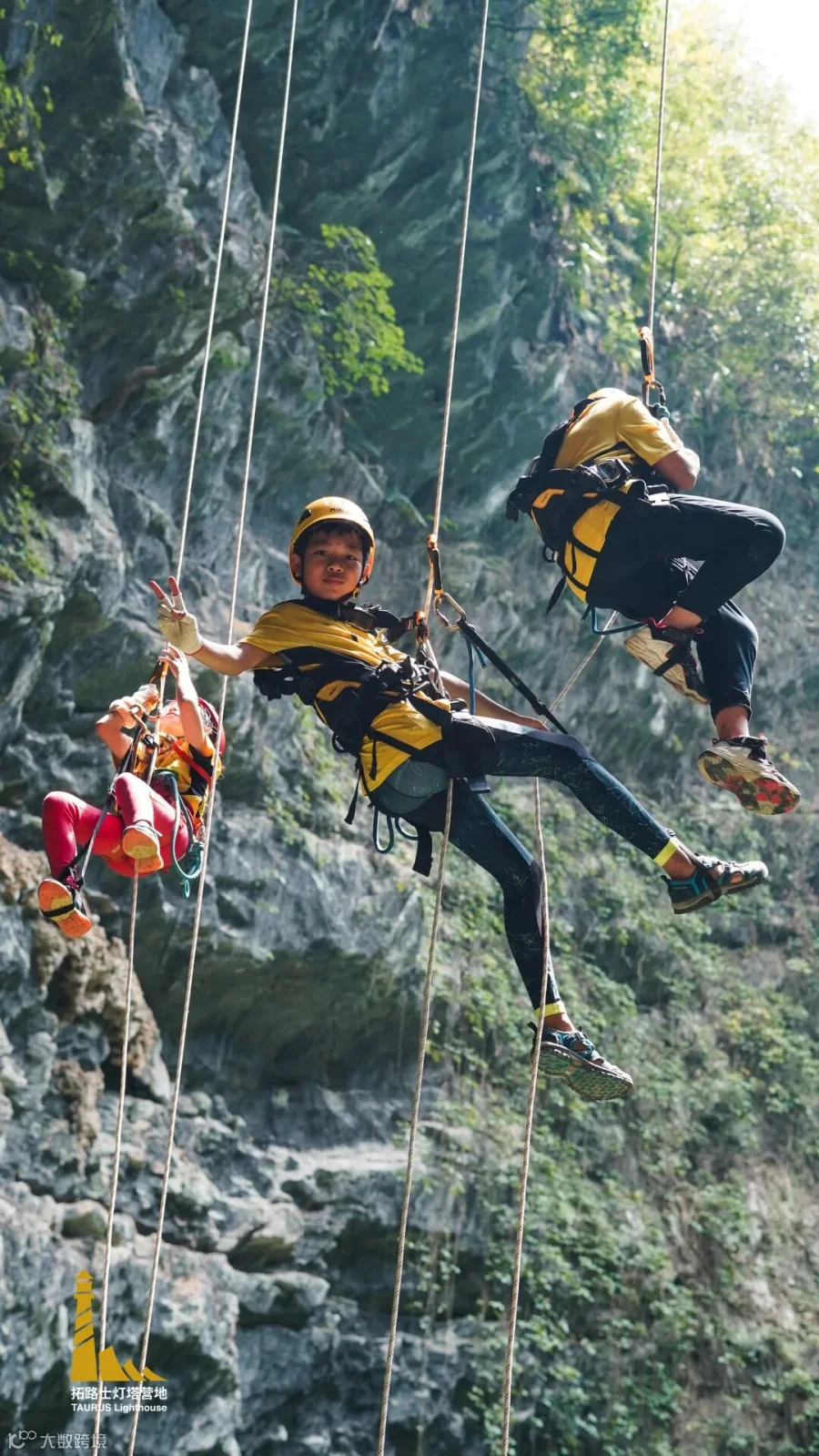 经过1个小时的训练,孩子们就已经掌握绳索运动的基本技巧,并能独立地进行上升和下降。看他们笑得多欢!先来一组打卡照!