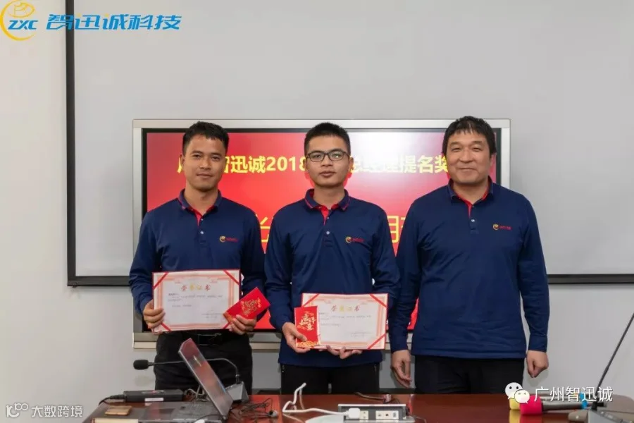 会议的最后议程是广州智迅诚2018年度优秀员工的颁奖仪式,!回顾智迅诚的2018,总有许多人让我们感动,他们从晾霸创业开始,就风雨同舟,把公司当作家,把对公司的热爱,化作勤奋的工作,这一切,同事们看在眼里,记在心里!公司看在眼里,也记在心里!公司副总经理黄天进,为智迅诚优秀员工获得者何伟良、李斌、戴敏如、付蓉进行颁奖!同时,公司总经理龙腾,为2018年度总经理提名奖的获得者唐光荣、吴明珠进行颁奖。