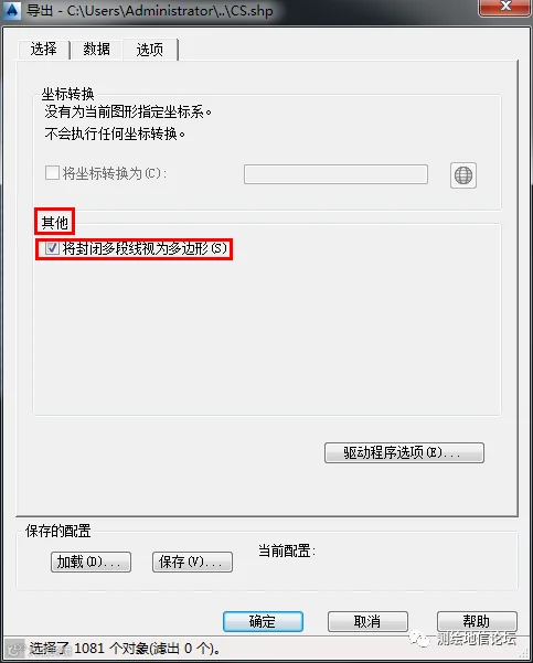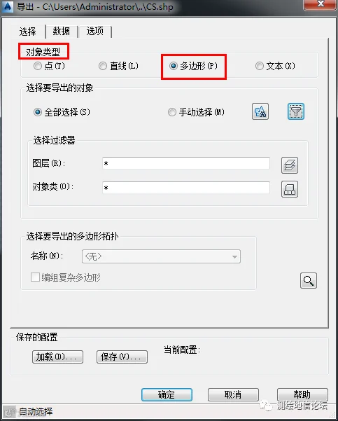 进入创建对象数据);需要将多段线围成的框的特性选择为封闭;在导出成shp的设置界面;在“数据”一项勾选上“面”并修改字段名称;在“选项”一项将“将封闭多段线视为多边形”一项勾选上。