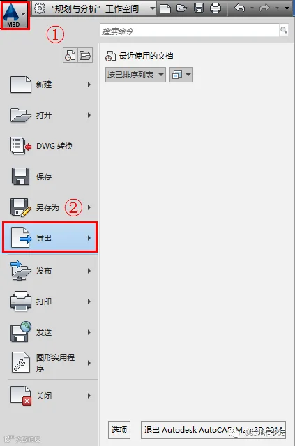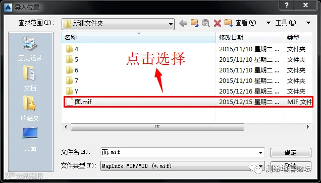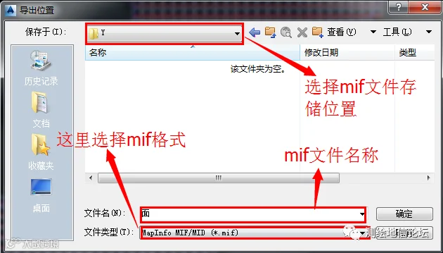 ,弹出一个下拉菜单,在下拉菜单中选择“导出”→“其他GIS格式”(图5),弹出“导出位置”对话框,选择好导出的mif文件存放的文件夹和mif文件名称(图6),这里先导出多段线围成的面,所以名称命名为“面”。