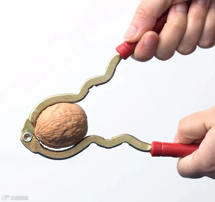 正常情况下,左肾静脉和腹主动脉之间有适当的脂肪组织充当缓冲物,不会引起左肾静脉受压,但如果因体型过瘦会导致体腔内脏结构发生改变。体型正常,脂肪可将肾脏及其血管支撑托起;体型过瘦,脂肪丢失继而少了支撑,体腔内脏结构也发生了改变,腹主动脉与肠系膜上动脉的夹角进一步变小,导致左肾静脉受压而产生"胡桃夹综合征",就如同下图的胡桃夹一样。