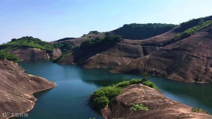 高椅岭丹霞地貌之“美”,不仅美在山水相融、树石相间、犬牙交错、大气磅礴、惊而不险,更美在墨绿色的“天池”环绕着一只在水面张牙舞爪的“巨蜥”,欣赏高椅岭的美最合适的方式就是徒步了。