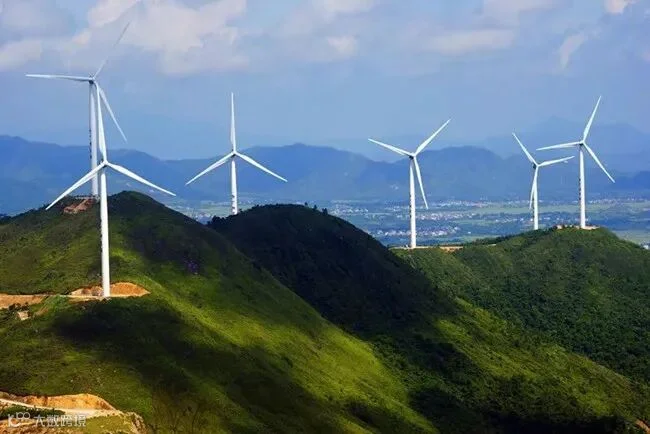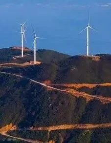 惠州惠东境内,盐洲岛有座风景秀丽的观音山,与碧海、蓝天、海滩、湿地、原生态的乡村构成一幅人间美景。近年,观音山建设了几十座风力发电风车。苍山翠林中高耸起-座座银白色风车,为小岛增添无限风光。