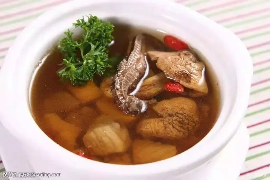 海马和海龙功效相似,其性温,甘咸,功能补肾壮阳,活血理伤,素有北人参,南海马的美誉。再配以枸杞子补肾填精,鸡腿菇、冬菇有养脾益胃的功效。相合而用,共凑补肾固腰之功效,尤其适合与冬季怕冷,腰酸背痛、夜尿频多的人群食用。