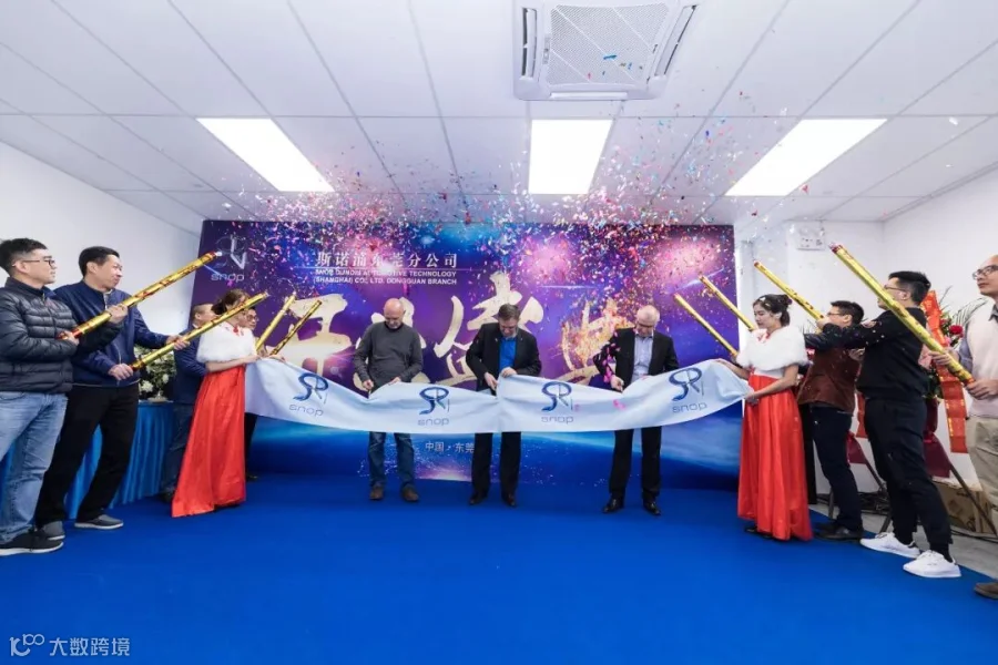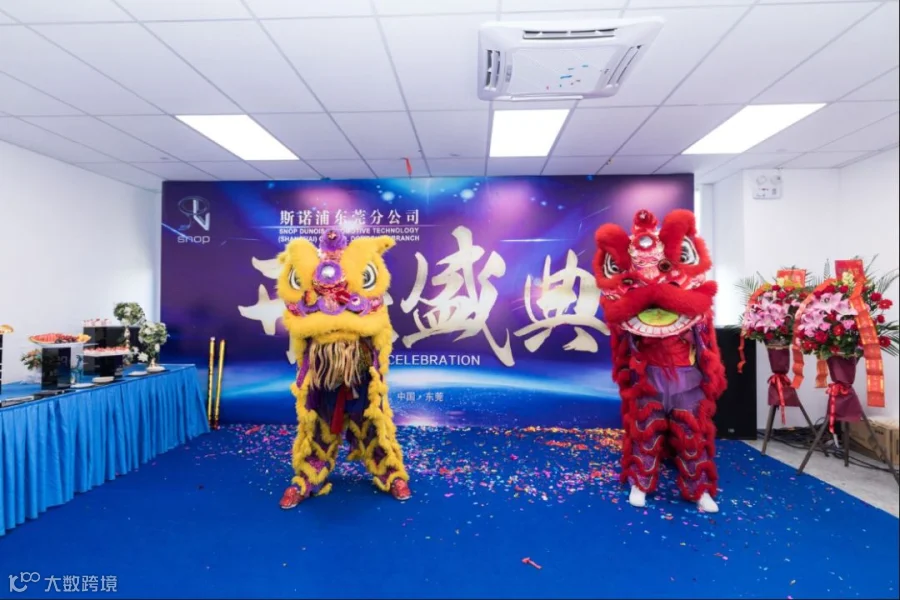 在主持人的引导下,三位外籍高管齐聚舞台,剪彩鸣“炮”,舞狮助兴,斯诺浦东莞分公司正式开业!
