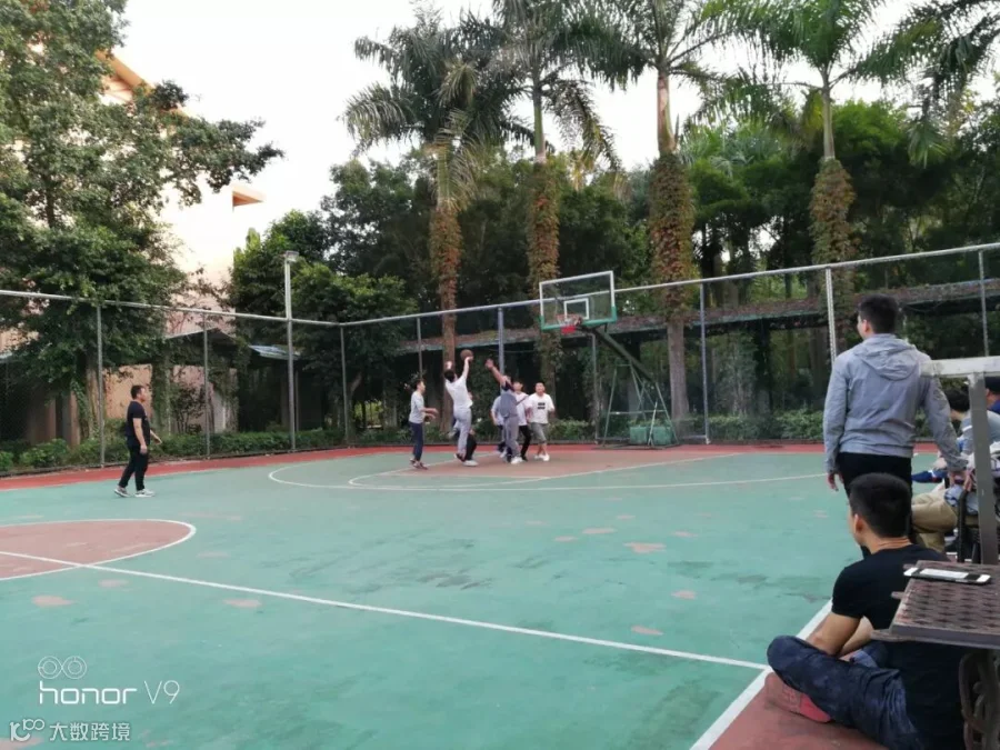 随着晌午临近,午餐过后,便迫不及待的前往旅途的第二站大观园度假村。一场篮球赛也便在此开始了激烈的角逐。一个个矫健的身影在球场上赛跑,只见球如行云流水般,“砰”!场外是高呼的呐喊声。挥汗如雨的球场,是一群老男孩耀眼的青春!