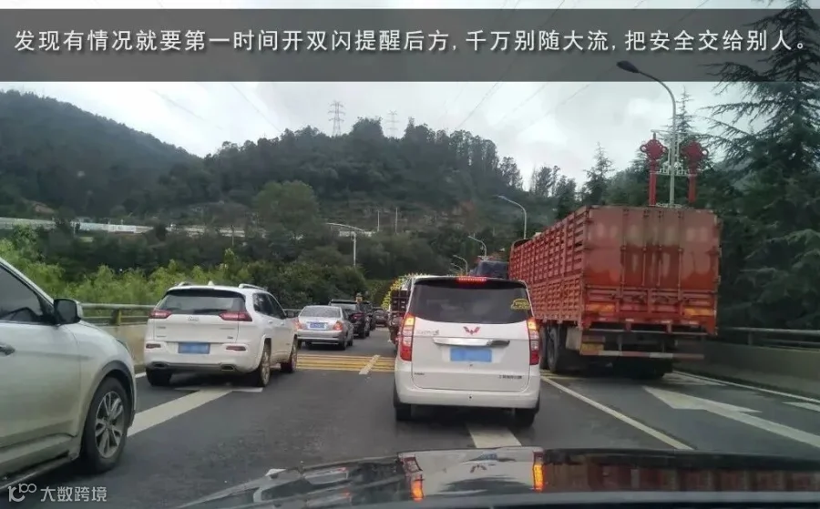 5、前方有事故、堵车,提前减速并发出信号提醒后方车辆,避免被追尾