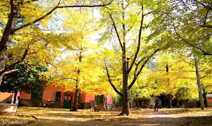 每年11月份,满山满树的银杏叶使得这里变成了金黄色的海洋,就像童话里的幻想世界