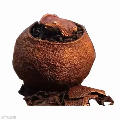 柑普茶又称桔普茶,是将新会大红柑挖去果肉,留下果皮,放入云南普洱茶叶后,再晒干、陈化而成的一种茶,以新会出产的品种为优。