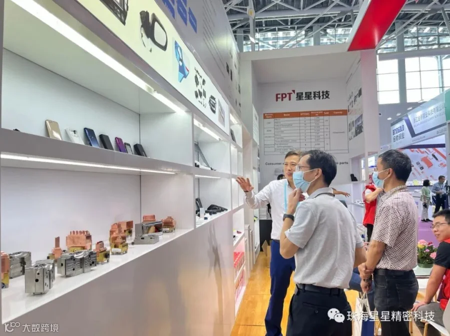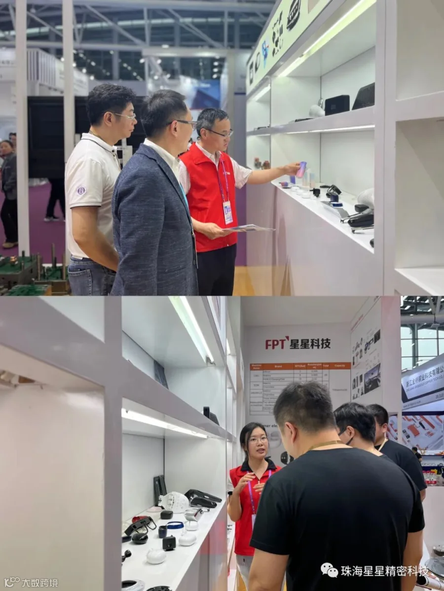 (星马模具总经理蓝仲雍和珠海精密结构件总经理李怀青为客户介绍产品)