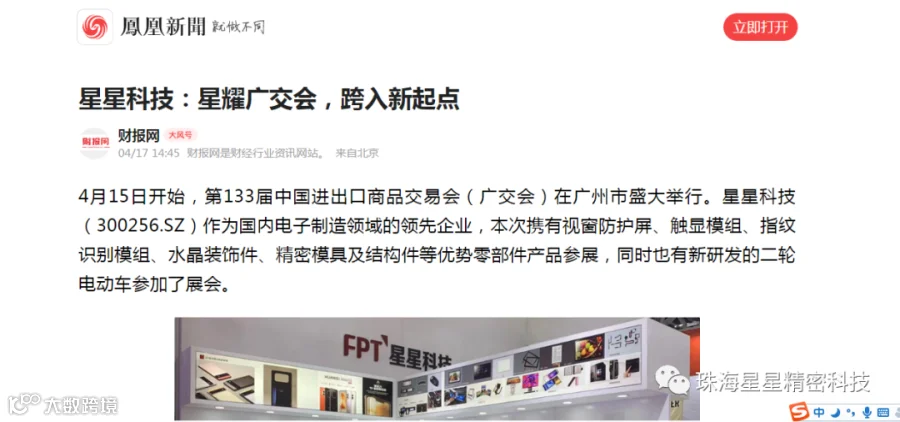 值得一提的是,星星科技本次参展还被央视财经频道报道,登上了凤凰新闻网,台州电视台也对星星科技进行了采访,同步也拍摄了新媒体视频宣传公司及产品,进一步扩大了星星科技的品牌影响力。公司参加本次广交会的目的除了推广公司产品,吸引更多客户外,还有一个重要任务是让更多客户和业内人士了解公司发展的新战略和新方向,从而更有助于公司未来业务的拓展。