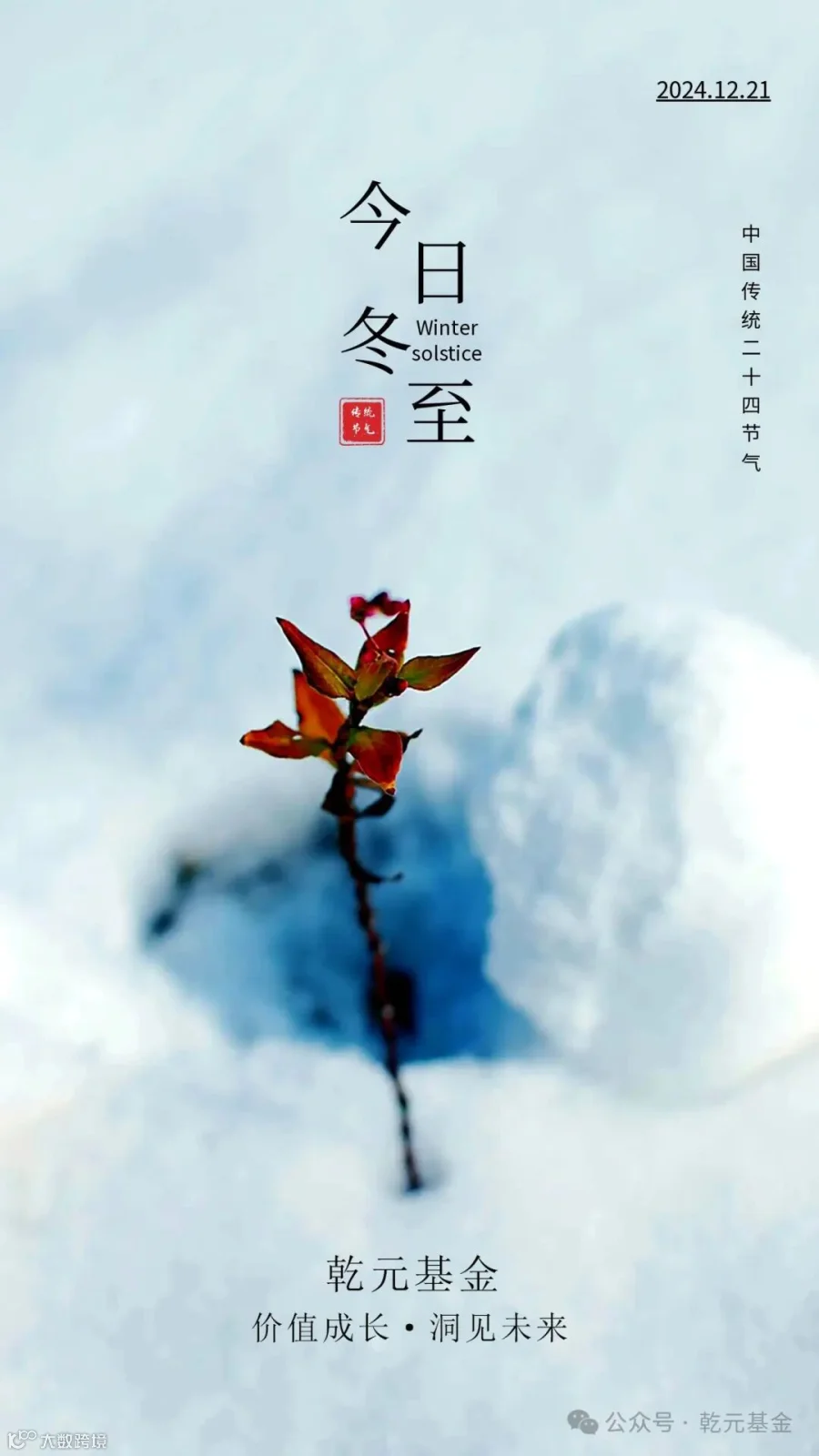 天时人事日相催,冬至阳生春又来!乾元基金祝您和您的家人冬至快乐,身体健康,愿未来的日子如春日般温暖。
