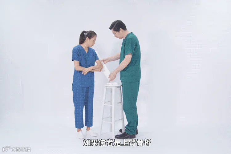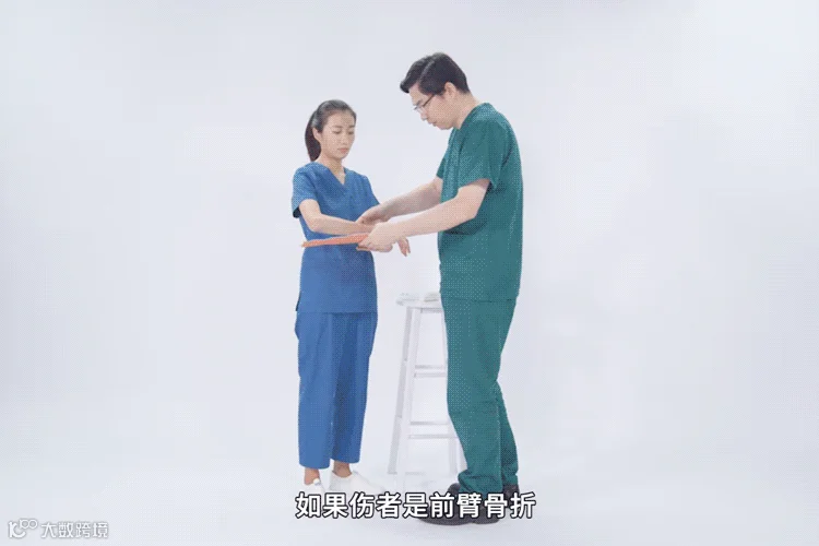 首先,使用一块长约60cm、宽20cm的木板固定伤肢,用绷带将伤肢固定在木板上;然后,利用绷带制作前臂悬吊带,将伤肢悬吊于胸前,并检查远端感觉及血运,健侧手可辅助托在伤肢下面,避免用力碰触或活动;最后,用冰袋对伤处进行冰敷,完成上述处理后,需及时送医。