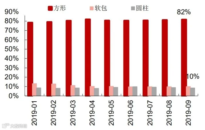 工厂的放量及软包电池组成效率技术改进等,圆柱形电池和软包电池的市场容量也会持续上升