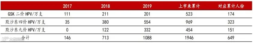 2.1、HPV疫苗产品签发量