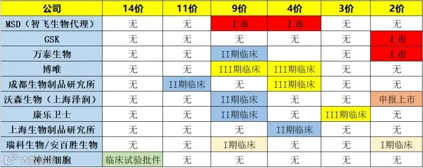 据国家食药监审评中心官网数据,包括上海生物制品、北京生物制品、上海泽润、康乐卫士等12家国内企业,已经申报HPV疫苗,品种包括2价、3价、4价、6价、9价、11价和14价HPV疫苗。