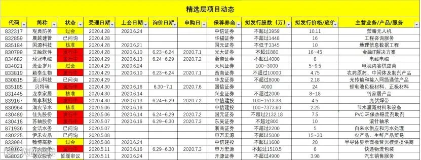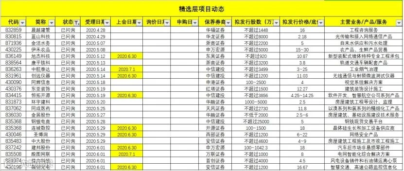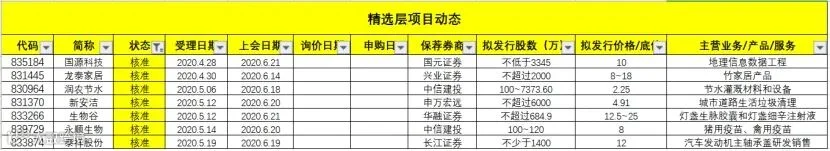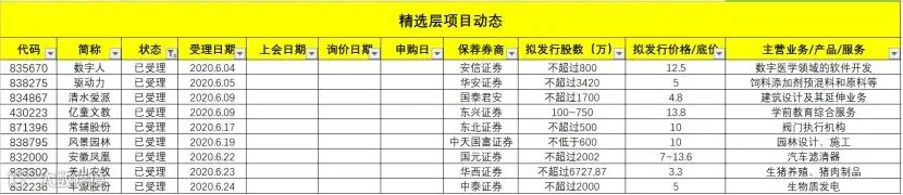 精选层所有受理企业如下:(按受理