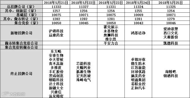 截至5月25日收市,本周5个交易日,新增挂牌公司10家,本周挂牌公司总数达11325家。