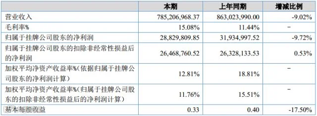 3月30日,新三板创新层企业雄狮装饰(837022.OC)发布了2017年年度报告,报告期内,雄狮装饰实现营业收入78,520.69万元,同比下降9.02%,实现归属挂牌公司股东净利润2,882.98万元,同比下降9.72%。