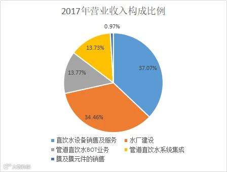 2017年公司收购了江苏必格建设有限公司和南京帝膜净水材料有限公司,公司的商业模式也从原先的以代理商为主开展直饮水业务,增加了直接从大型企业承接的“一带一路”建设项目中分包自来水厂和污水处理厂的设计、安装及施工项目,增加了把水处理材料、器件等销售给净水器生产厂家。业务边界的拓展带动公司业绩的提升。
