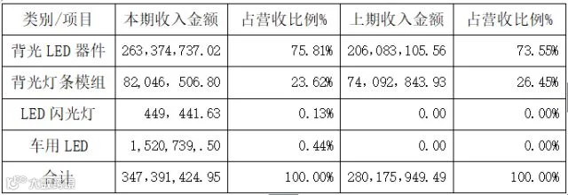 公司主要产品有背光LED器件、背光灯条模组、车用LED及闪光灯,主要应用于各类手机、平板电脑、电视、显示器等智能数码产品及工控、医疗、车载、飞行仪表显示屏领域。