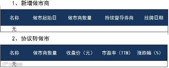 导读:中纳日报11月3日1 指数表现2 成交概况3 做市统计4 新股挂牌5 新增做市6 定增动态7