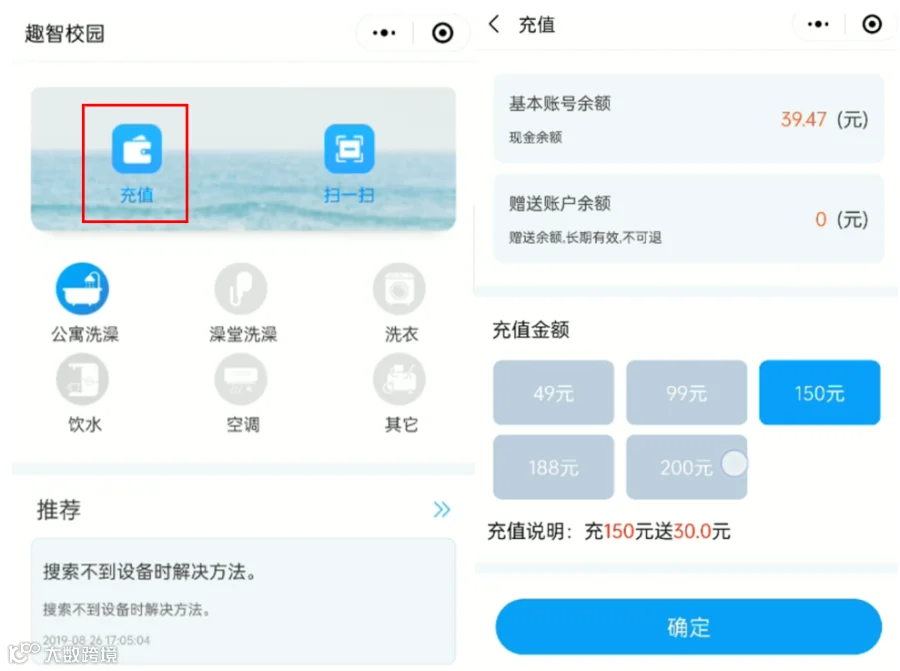 绑定完返回首页进行充值,目前开学有优惠活动。