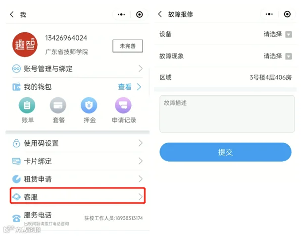 在线报修。