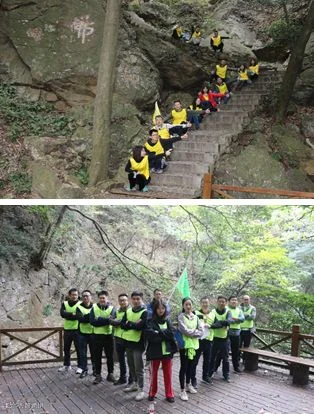 破冰环节结束后,4支队伍在教练和队长的带领下开始第一天的登山与景区游览活动。尽管山区天气湿冷、山路陡峭,但全员全程积极参与,相互扶持,以锲而不舍的精神顺利登顶,充分展现“凝心聚力,一往无前”的活动主题。